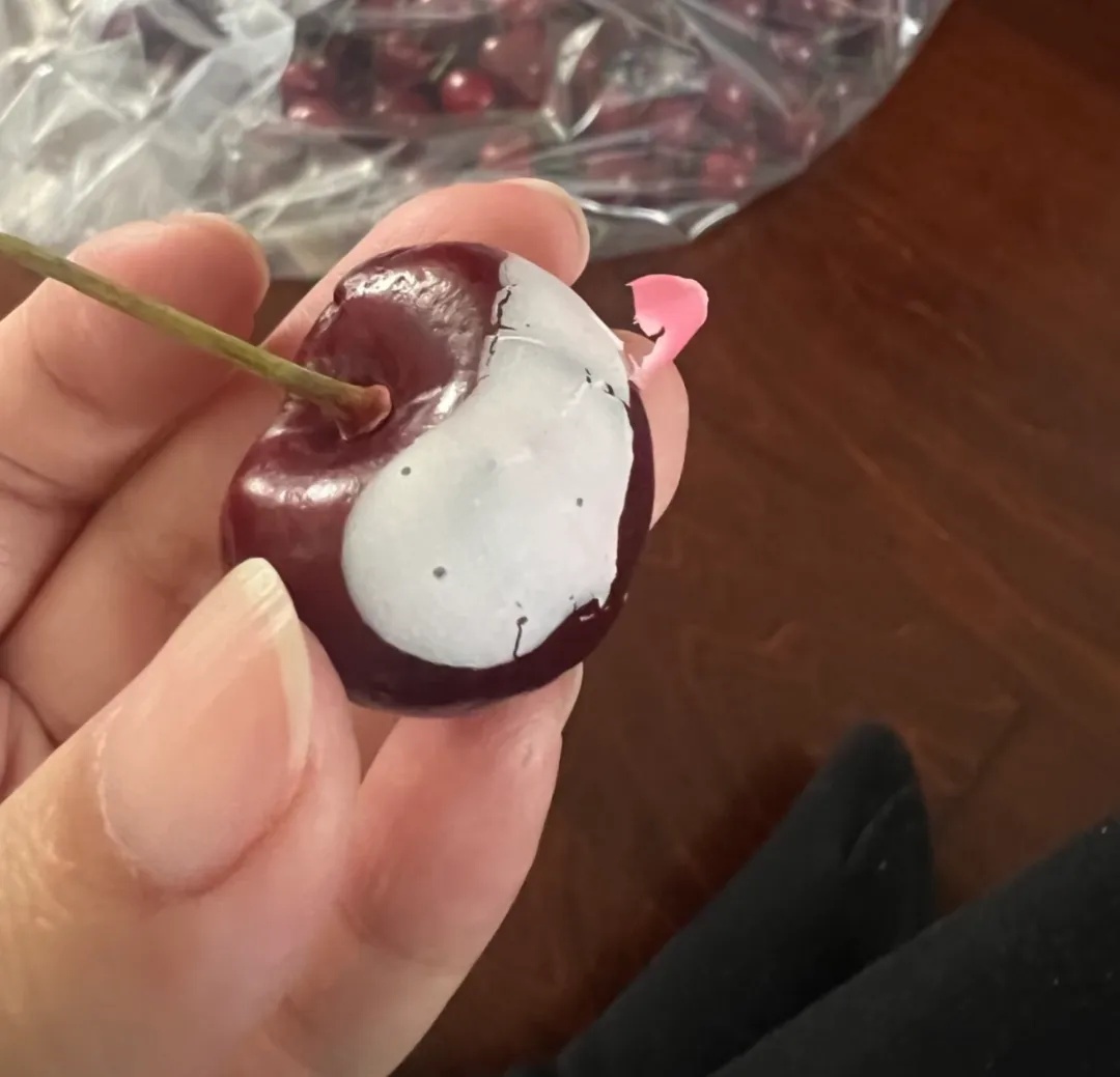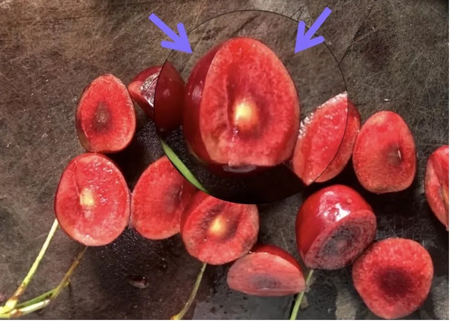 ❌要注意,车厘子如果大幅度脱核,伴随果肉褐变、出现异味、发苦,说明坏了。